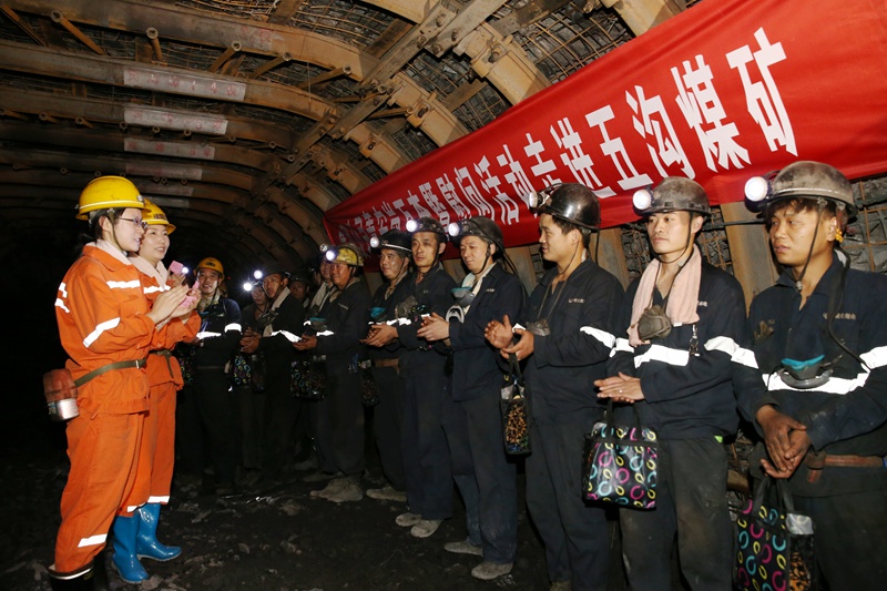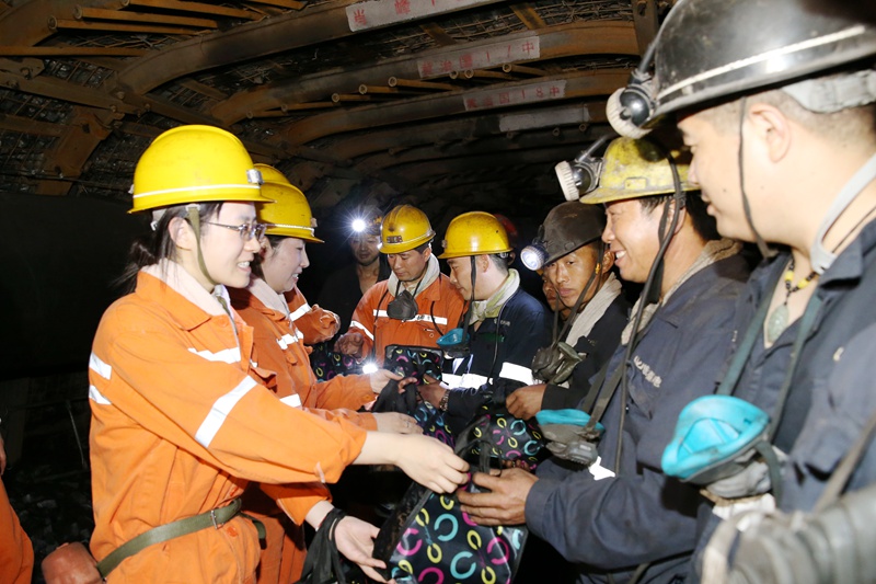 团员青年代表现场演唱了《明天会更好》《三百六十五个祝福》等歌曲,用动听的歌声向矿工兄弟传达真诚美好的祝愿。