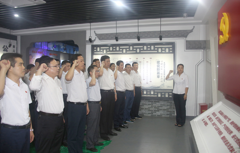 在参观过程中,大家在讲解员引导讲解下,仔细聆听,并不时在展板前驻足观看。真实鲜活的案例、视频图片、文字说明和现代先进科技现结合,全面展示了党的十九大以来,全面从严治党的新形势、新精神、新任务。发生在近期淮北市、安徽省一个个真实的腐败案例,教育引导大家充分认识到反腐败斗争和党风廉政建设的长期性、复杂性、艰巨性。以案释纪,生动直观的为大家上了一堂反腐教育课。随后,全体党员面对党旗,重温入党誓词。